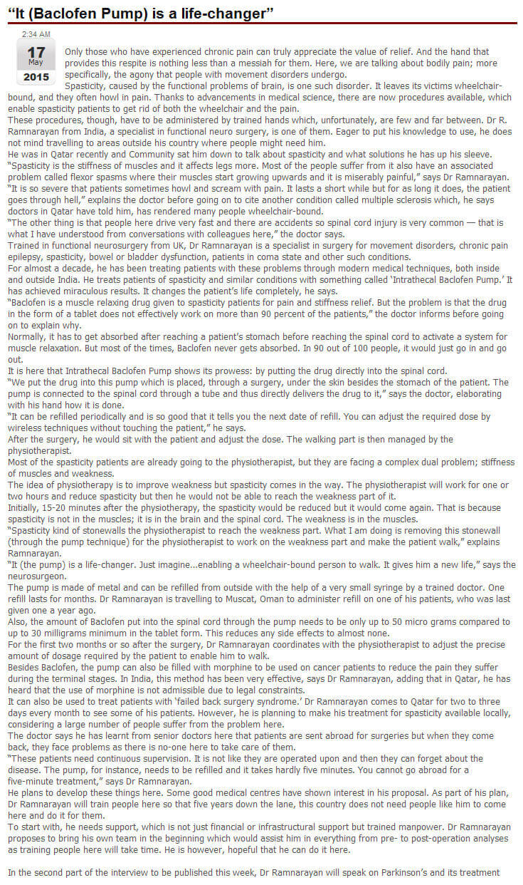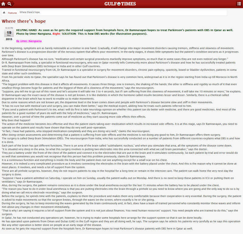 Dr. R. Ramnarayan is an experienced Restorative / Functional Neurosurgeon. Restorative neurosurgery is that subspecialisation of neurosurgery that deals with the surgical management of lost functions of the brain, spinal cord and the nerves. Read more...
