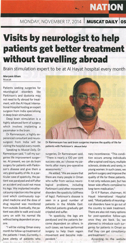 Dr. R. Ramnarayan is an experienced Restorative / Functional Neurosurgeon. Restorative neurosurgery is that subspecialisation of neurosurgery that deals with the surgical management of lost functions of the brain, spinal cord and the nerves. Read more...